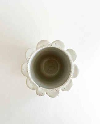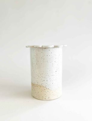 Wheel thrown with a cream speckle clay with hand-built additions & dip glazed in a beautiful glossy white, this vase (or utensil holder) is a perfect addition to any room in the house.