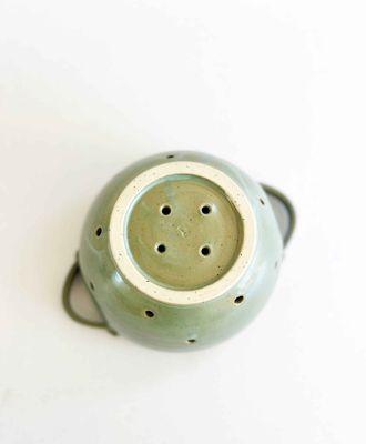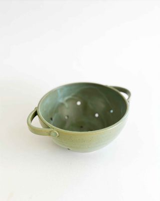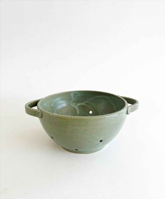 Wheel thrown in a speckle stoneware clay and glazed in a beautiful sage green, this bowl is perfect for collecting up those little summer fruits or vegetables.