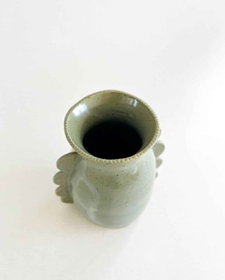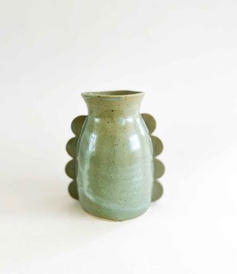 This one of a kind vase has been wheel thrown with a speckle stoneware clay, hand-built additions added, then glazed in a beautiful sage green.