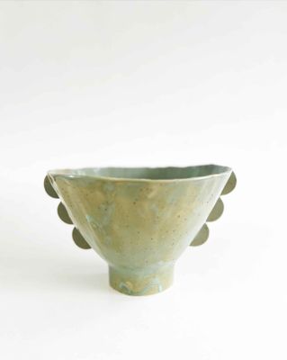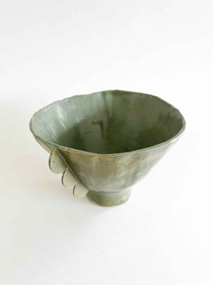Hand-built in a cream speckled stoneware clay and glazed in a beautiful sage green, this rustic one-of-a-kind bowl will bring that little bit of joy to your day. Fill with fruit, flowers or just have on display.