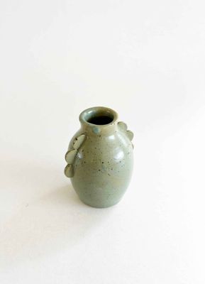 Wheel thrown with a speckle stoneware clay with hand-built additions and glazed in a beautiful sage green, this little vase would look super cute filled with small foraged flowers.