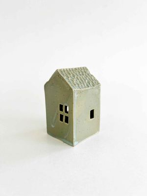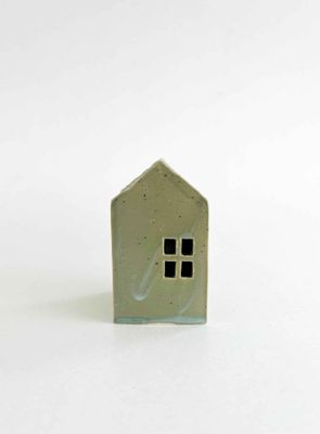 Hand-built with a speckle stoneware clay, carved and glazed in a beautiful sage green. There is a little hole on the back, so it can either be hung on the wall, or could sit on a desk/shelf etc. Display one little house on it's own, or grab a few to make a set!