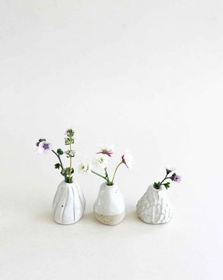 Hand-sculpted in a speckle stoneware clay & glazed in a beautiful glossy white, this mini vase would make the cutest addition to any shelf in your home. Pick your tiny flowers and have fun arranging! (See other mini vases listed if you'd like to make a set).