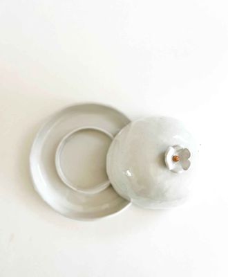 Hand-built in a speckled stoneware clay and glazed in a beautiful glossy white, this one-of-a-kind butter dish is the perfect size for half a block of butter.