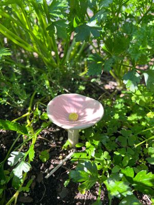 Hand-built with a cream speckle clay, carved, then under glazed in a blush pink and buttercup yellow, this little bee cup is a perfect addition to your garden in summer... a place for bees to safely stop, drink the water they need, and rest without drowning.